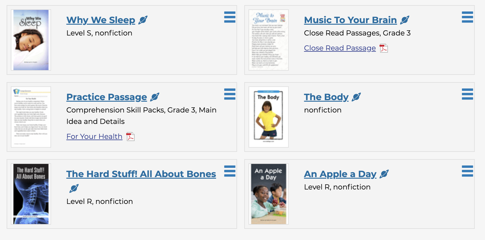 1. The ways different body systems work (Function) 2. Connections between body systems (Connection) 3. Staying healthy and promoting wellness. (Responsibility)